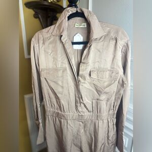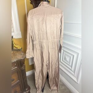 Step out in style with this elegant cream jumpsuit. Perfect for any occasion, it offers a sophisticated look with its sleek design. Just steam it and rock it ladies!
