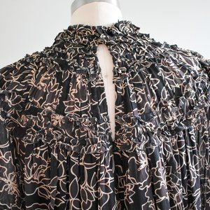 Nicholas Floral Neck Ruffle / Gathered Sleeve Blouse
