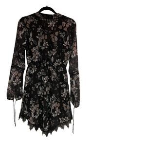 floral, dark floral, romantic, chiffon, lace, date night, v-neck, sleeves, boho, bohemian, girly