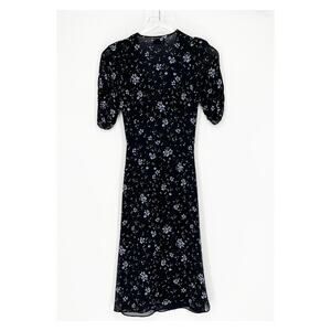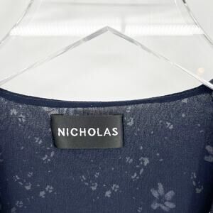 Nicholas Floral Silk Slit Leg Knee Length Dress 0 Blue