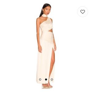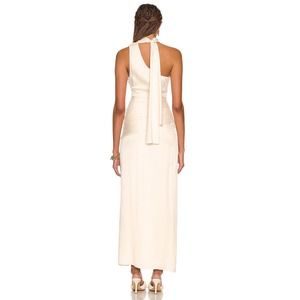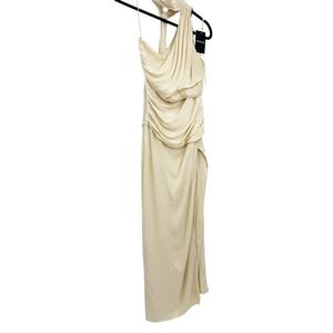 Nicholas Fynlee One Shoulder Gown With Neck Scarf Cream Size 4 NWT