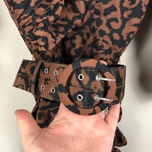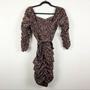 Nicholas Gathered Ruched Belted Leopard Print Mini Dress Brown Cocktail Party