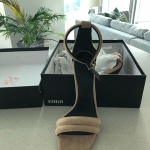 Brand new, never worn Nicholas brand Joclyn Pump in Seashell Suede size 40.
