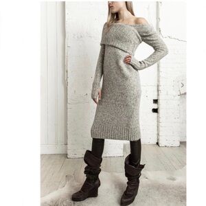 10/10 sweater dress. New with tags. Purchased big to wear through maternity and didn’t end up wearing. Heavy knit! Alpaca blend so warm and versatile. Color is Stone Heather. Originally bought from Free People (they have a collection w Nicholas K)