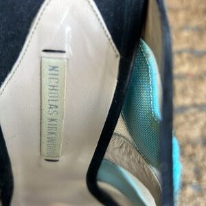 Nicholas Kirkwood Made in Italy Black and Turquoise Mesh Heels High Heel Peep Toe Sandals 40 in Excellent Pre-Owned Condition. The tips of the heels have some rubbing and there is very minor wear on the soles, please see photos for full item condition description.