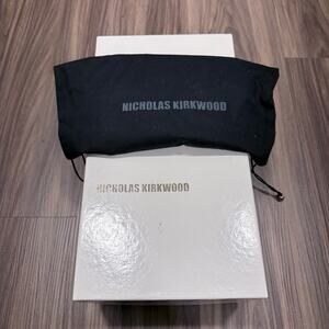 Nicholas Kirkwood’s rare men’s dress shoes, crafted in Italy with a sleek mix of leather and technical textile, offering his signature architectural refinement. The squared toe and contrast welt give the pair a modern, sculptural profile that stands out from classic dress styles. Gently worn with noticeable sole wear but clean, well-kept uppers. A refined, hard-to-find design for buyers who appreciate understated luxury. Box and dust bags included.
