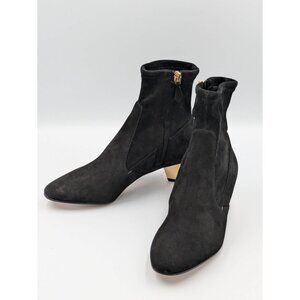 -Ankle-high stretch suede boots in black. -Almond toe.