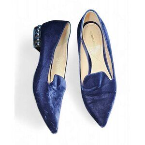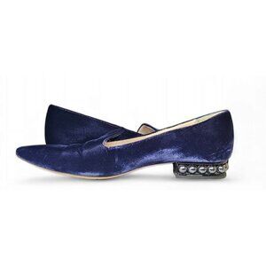 Nicholas Kirkwood velvet blue pointed toe faux pearls flats shoes EU39 US8.5