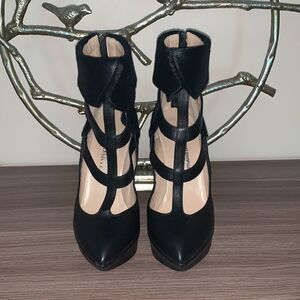Nicholas Kirkwood x Rodarte collaboration platform booties. In box, worn max 2 times. Absolutely Fashionista must have. Polacchino vit kiry / pony lux model. Size 37. Black. Pony hair ankle cuff and heel. Zipper closure at the back of heel. Pointed toe. Cut out T strap. 5’heels and 1’ platform. Made in Italy.