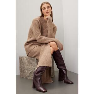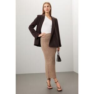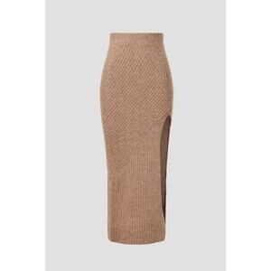 Brown knit (7% Alpaca, 37% Merino wool, 20% Acrylic, 35% Polyester, 1% Spandex). A-line. Pull on. 35"" from waist to hemline. 22"" slit. Imported.