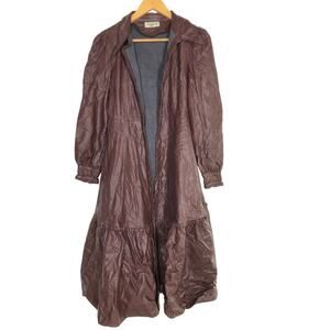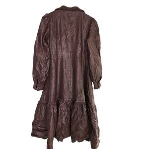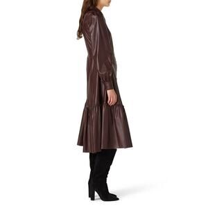 Nicholas Larisa Dress Faux Leather Balloon Sleeve Button Front Midi Brown 4