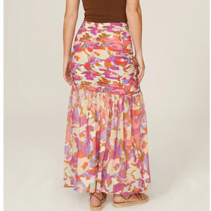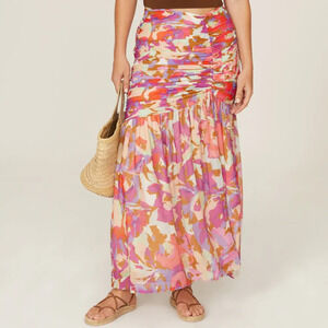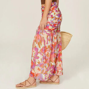 Nicholas Mabel Skirt Ruched Drawstring Slit Hem Midi Abstract Floral Size 14