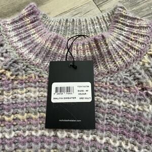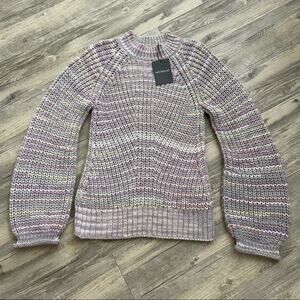 Nicholas Woman Maliya Marled Alpaca-Blend Sweater Gray. Space-dyed stripes color this ultra-cozy Nicholas turtleneck sweater framed with raglan sleeves. Features a crew neckline, allover grey and pink knit colorway, marled, slip on model, heavy-weight knit. 50% Alpaca wool 45% Acrylic 5% Wool. Condition is new with tags, never worn.