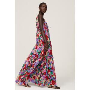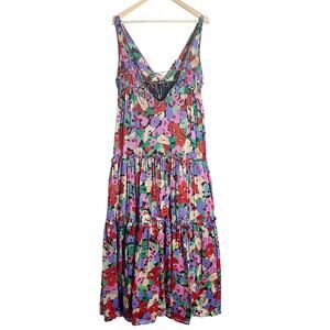 Nicholas Myla Multicolor Floral Print Silk Blend Tie V-Neck Maxi Dress Size 4