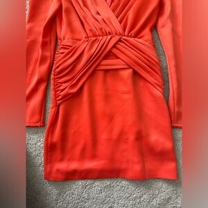 Never worn, with tags. Stunning cocktail mini dress from Nicholas. Bright coral with vneckline, longsleeves and ruched waist. Great quality and condition