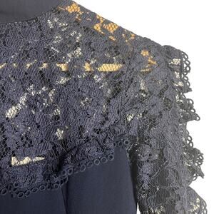Nicholas Navy Blue Ruffle Trim Lace Long Sleeve Mini Dress Size 2