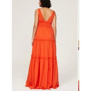 Nicholas Orange Tiered Ruffle Maxi Dress Size 2 Silk Plunging Vacation Gown $595