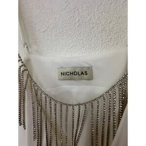 Nicholas Rhinestone Fringe Cowl Neck Ivory Crop Top – Women’s M
