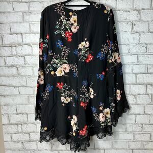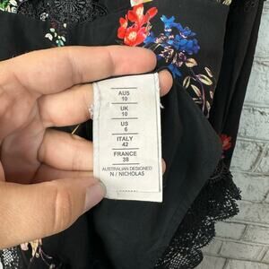 Nicholas Romper Cecile Floral Silk Crochet Lace Bell Sleeve Black White Red 6