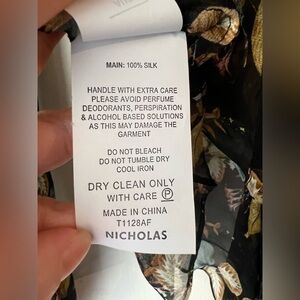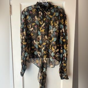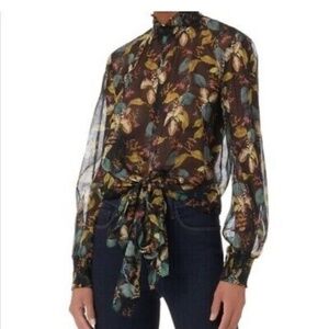 Nicholas Silk Ava Black Floral Sheer Bow Blouse US 6