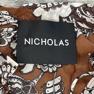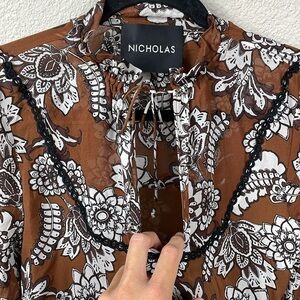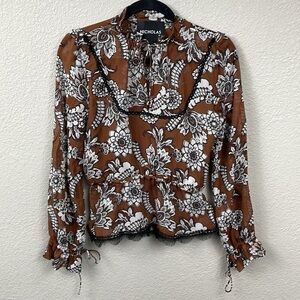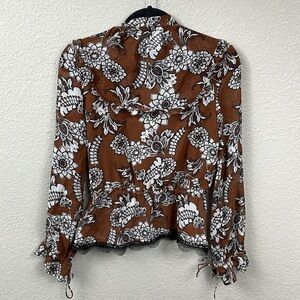 Nicholas Silk Floral Ruffle Long Sleeve Blouse Top Brown Sz 4