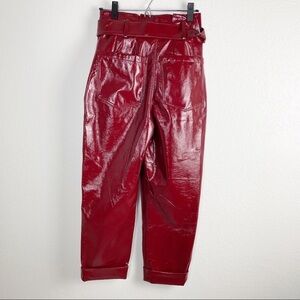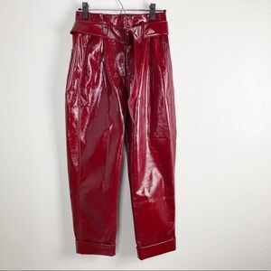 Nicholas Synthetic Crinkle Belted Cropped PVC Trouser Pants in Burgundy Red