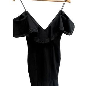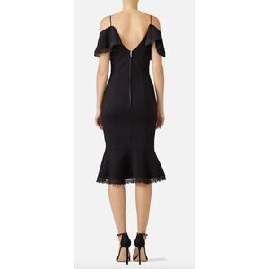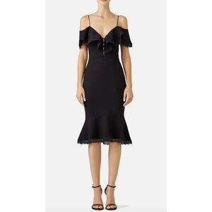 Nicholas US 4 Black Peplum Cold Shoulder Midi Dress