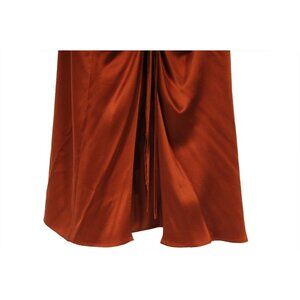 Nicholas Womens Ruched Silk Midi Skirt US 2 Orange Silk Zip Leg Split Split