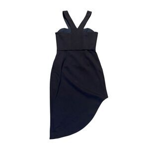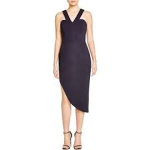 Nicholas x REVOLVE Ponti Halter navy blue Asymmetrical hem body con dress sz 4