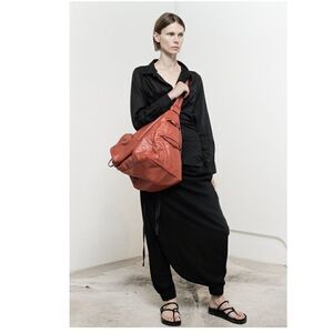 100% aniline sheep leather/ can be worn as backpack or shoulder bag/ adjustable straps/ multiple zipper closures and organizational pockets/ zipper pocket closures/ antique brass hardware