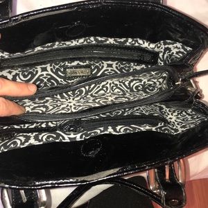All leather handbag in excellent condition and shape, very clean, has four dividers inside, never been used. No stains.