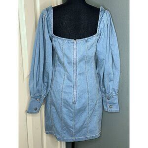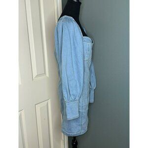 Nichole Lynel Denim Off Shoulder Sweetheart Neckline Puff Sleeve Mini Dress NWT