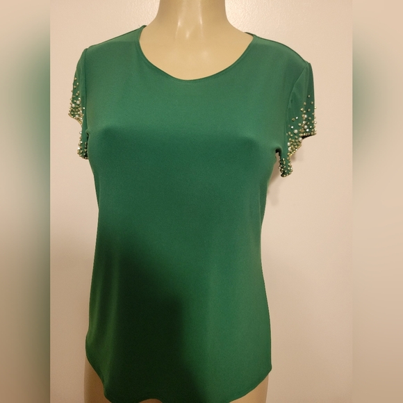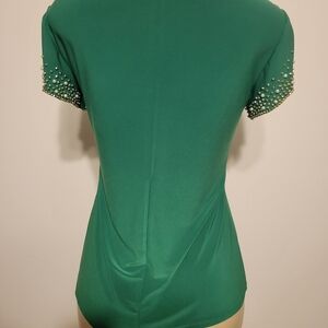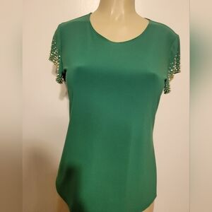 Nichole Miller Green Beaded Sleeve Women's Top Demure Business Classy Small