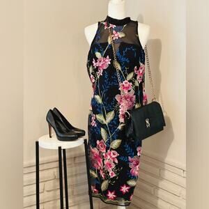 Nichole Miller Rose Hill Floral Embroidered Dress-Size 4 midi