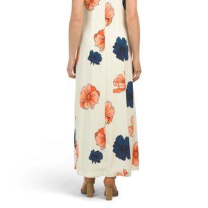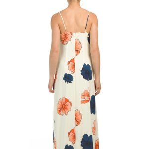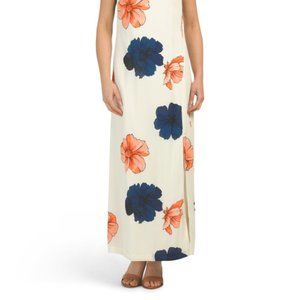 Stunning Nichole Miller Studio NWT women's ivory multi floral print maxi dress. Scoop neckline. Adjustable spaghetti straps. Left side slit that goes above the knee. Self lined. Hidden back zipper closure. Column silhouette. Maxi length. Ivory background with dark blue and coral flowers. Hits right below the ankle. Size 10. Length 64", Chest 16" laying flat. 100% Polyester. Hand wash cold.