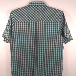 Nick Danger Mens Large Blue & Brown Plaid Casual Short Sleeve Button Up Shirt