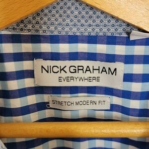 Nick Graham | Everywhere Stretch Modern Fit Blue Gingham Plaid Shirt.