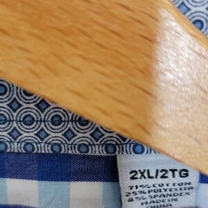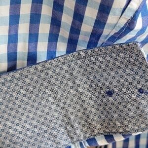 Blue & white gingham check plaid button down shirt with contrasting cuffs.