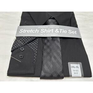 Nick Graham Mens Black Stretch Shirt Tie Set Modern Fit 2XL (18 - 18.5) 36/37