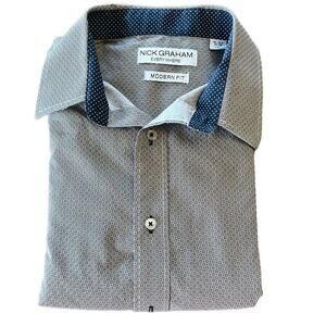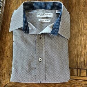 Nick Graham | Men’s Blue Modern Fit Long Sleeve Dress Shirt | Size Large | 0031