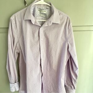 Nick Graham Men's Long Sleeve Purple Check Dress Shirt Size Large 16-16.5, 34-35