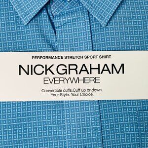 Nick Graham Men's Shirt S Printed Performance Stretch Short Sleeve Shirt Blue S