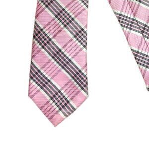 Nick Graham Plaid Tie Men’s 60” Pink Gray Stripe Preppy Designer Classic Tie New