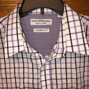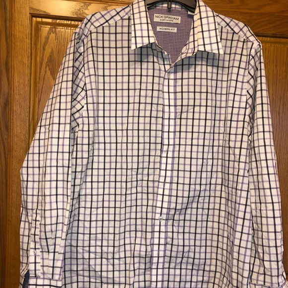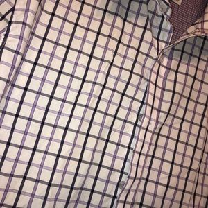 White, Grey, dark purple and light purple button up. Gently used - some yellowing on inside collar as shown in picture