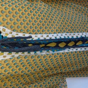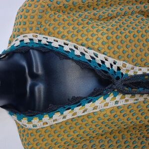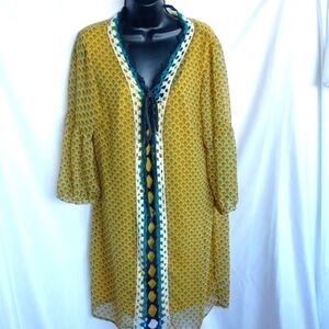 Nick & Mo Anthropologie Dress, Crochet front, gold & green