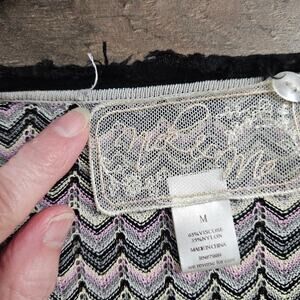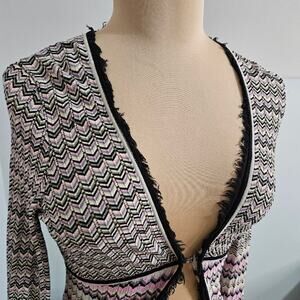 Nick & Mo Cardigan Women's Black and Pink Chevron Sweater Medium Retro Zig Zag