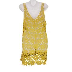 Nick & Mo Crochet Tunic Tank Top Swimwear Cover-Up V-Neck Yellow Womens Size L