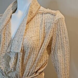 Nick & Mo Lace Open Front Boho Cream Beige Knitted Cardigan in excellent condition.