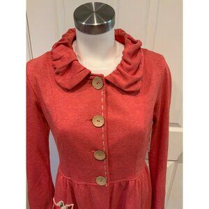 Nick & Mo Light Red Wooden Button Coat w/ Floral Patch, Size Small