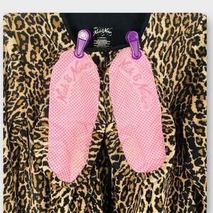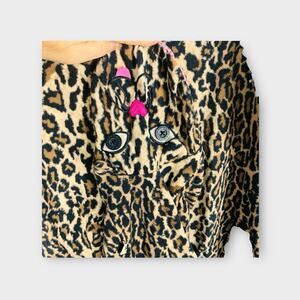 Embrace playful comfort with this fun leopard d footed pajama! This full-zip pajama features an all-over print with attached footies designed as cat faces complete with soft ears and charming embroidered details. non-slip soles for added safety and convenience on smooth floors. perfect for cozy nights in, pajama parties with friends, or adding a touch of whimsy to your lounging wardrobe.